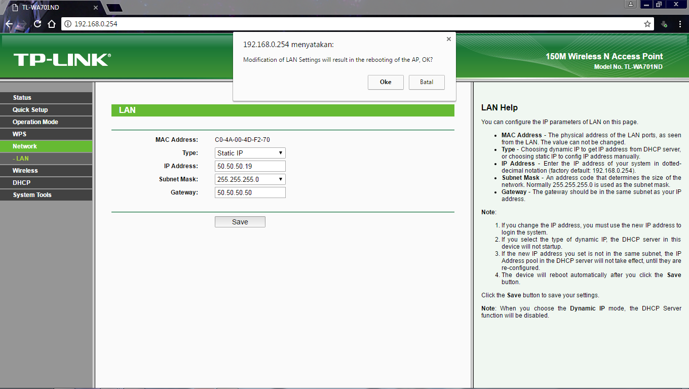 IP Mask Gateway.