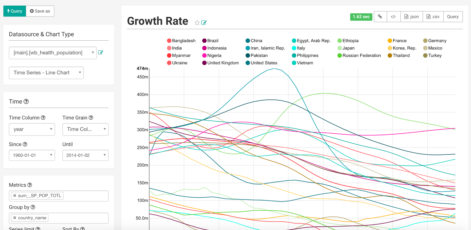 Superset charts.