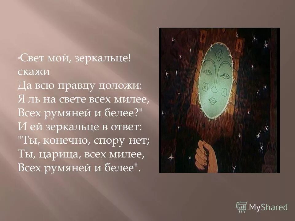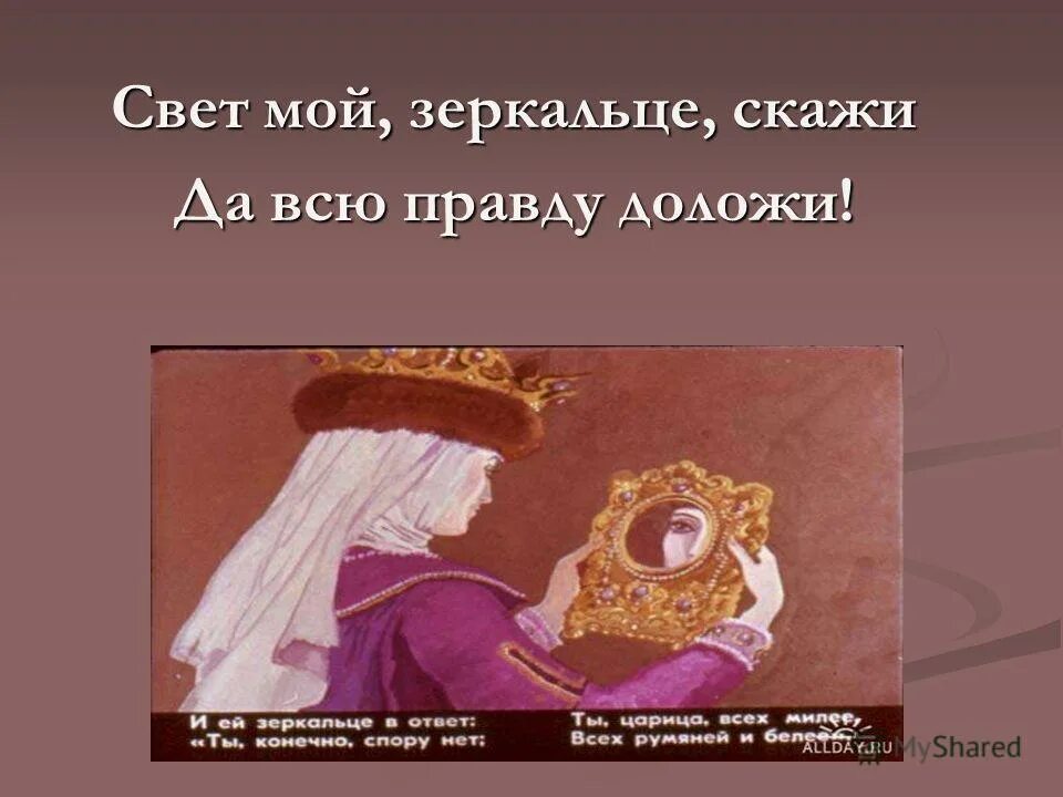 Свет мой зеркальце скажи да всю правду доложи я ль на свете всех.