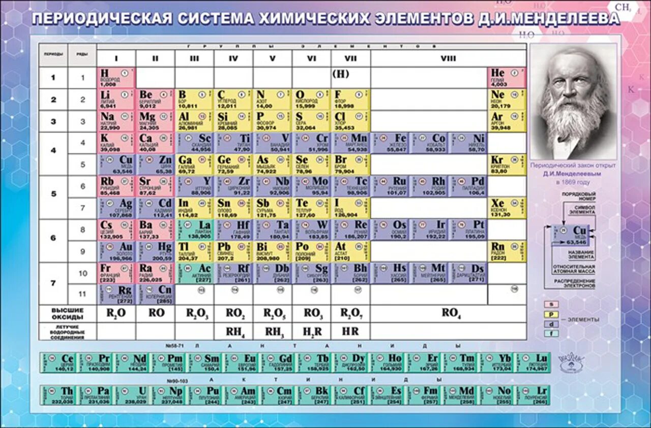 Периодическая таблица система элементов Менделеева периодическая.