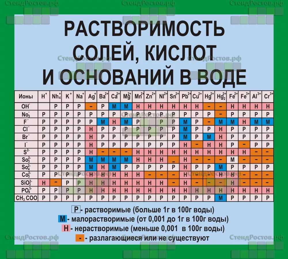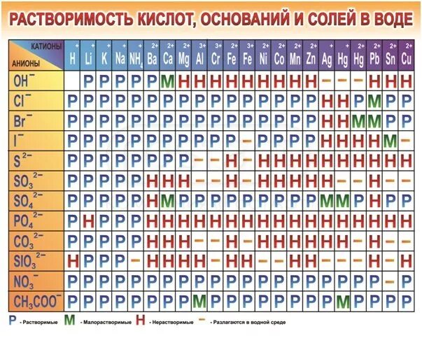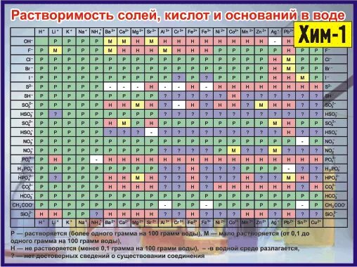 Таблица растворимости солей
