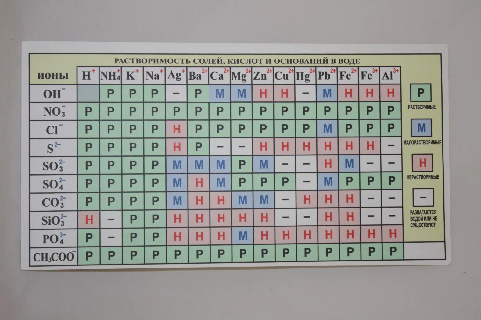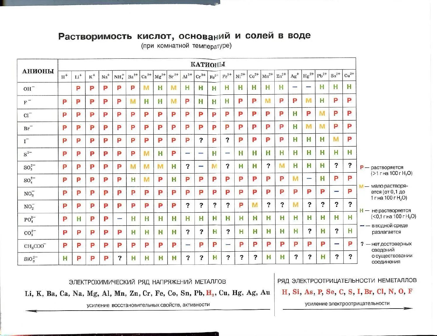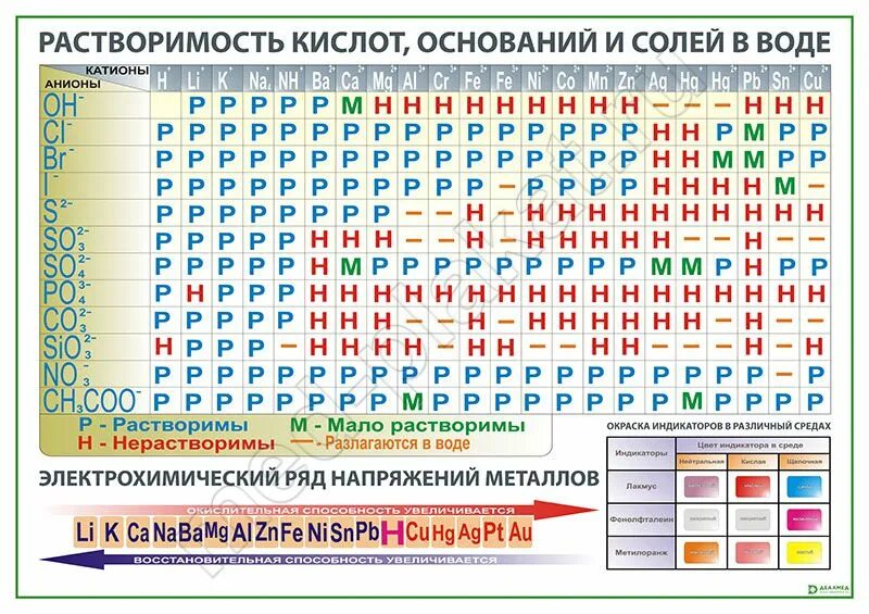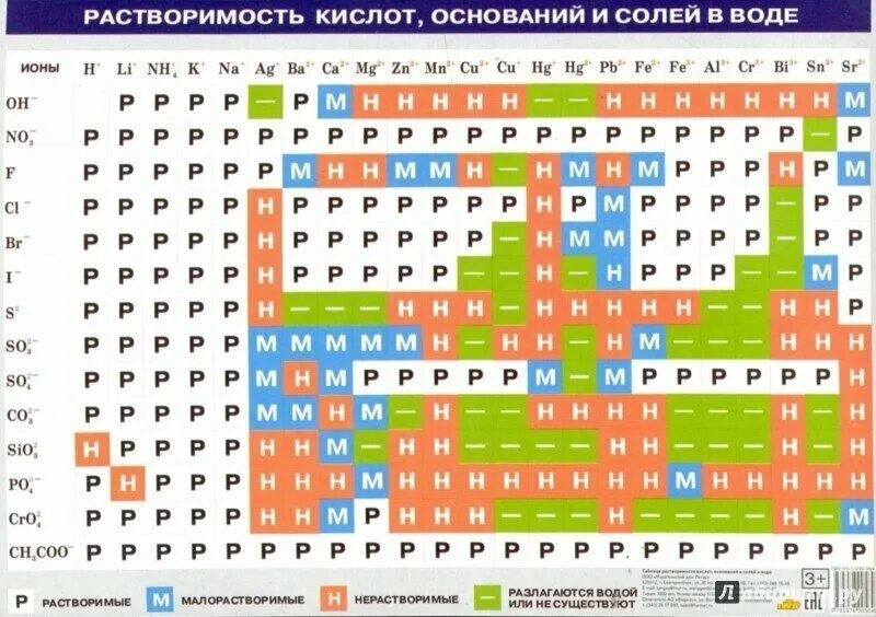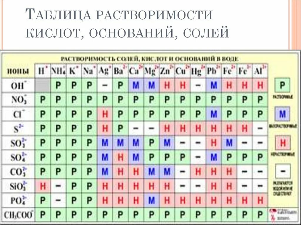 Таблица растворимости кислот солей и оснований ЕГЭ.