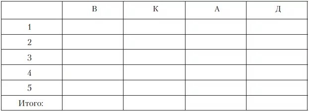 Таблица из четырех Столбцов.