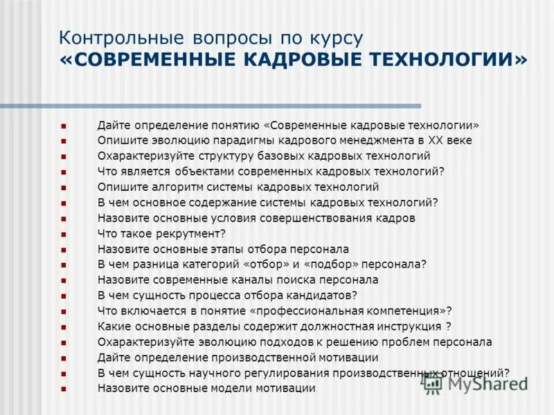Современные кадровые технологии в управлении.