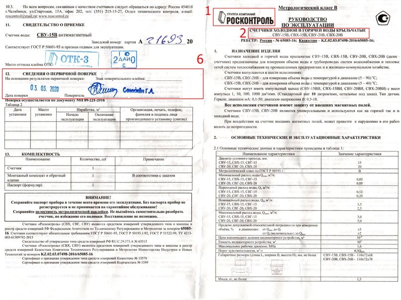 Техпаспорт на счетчик воды образец
