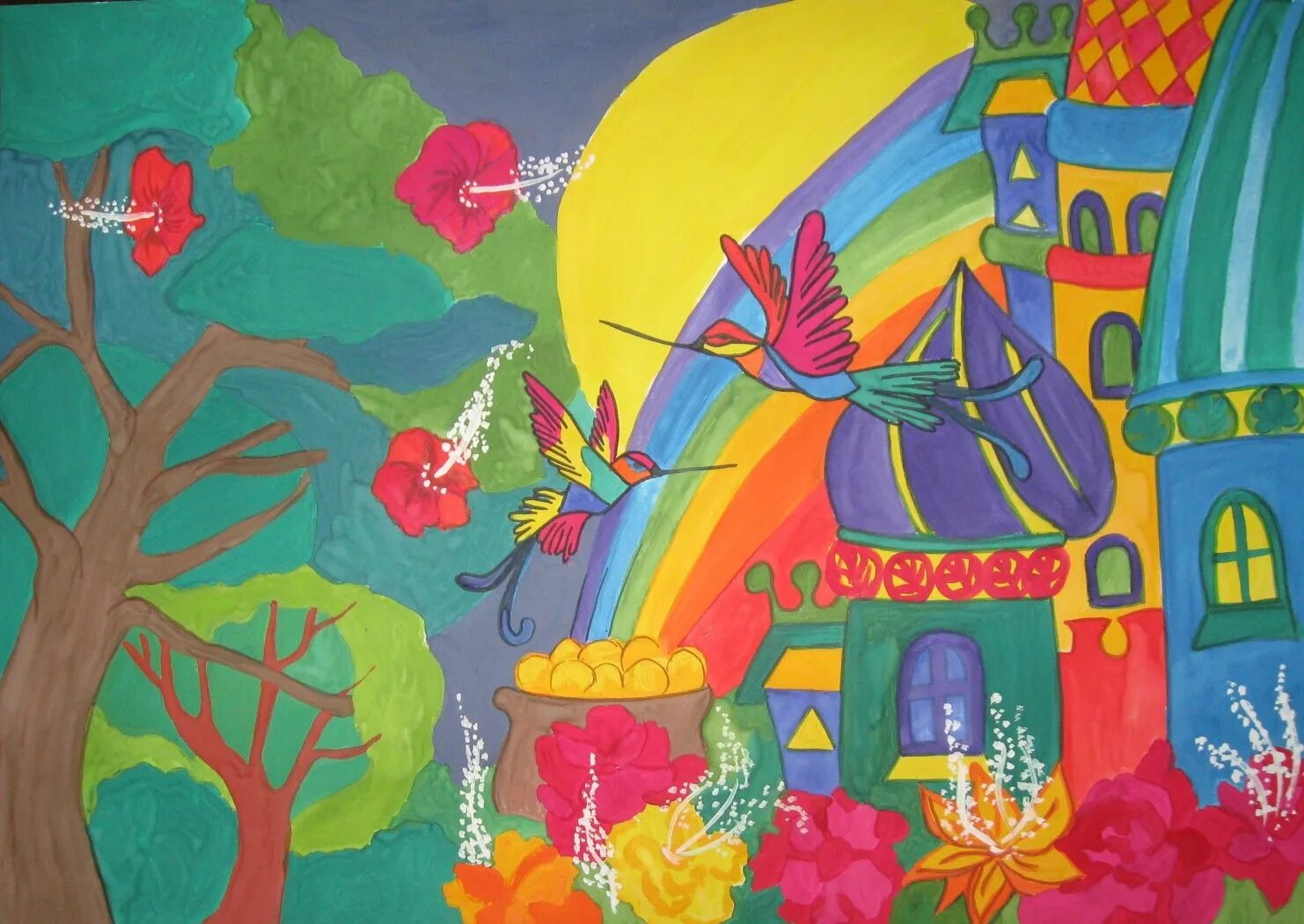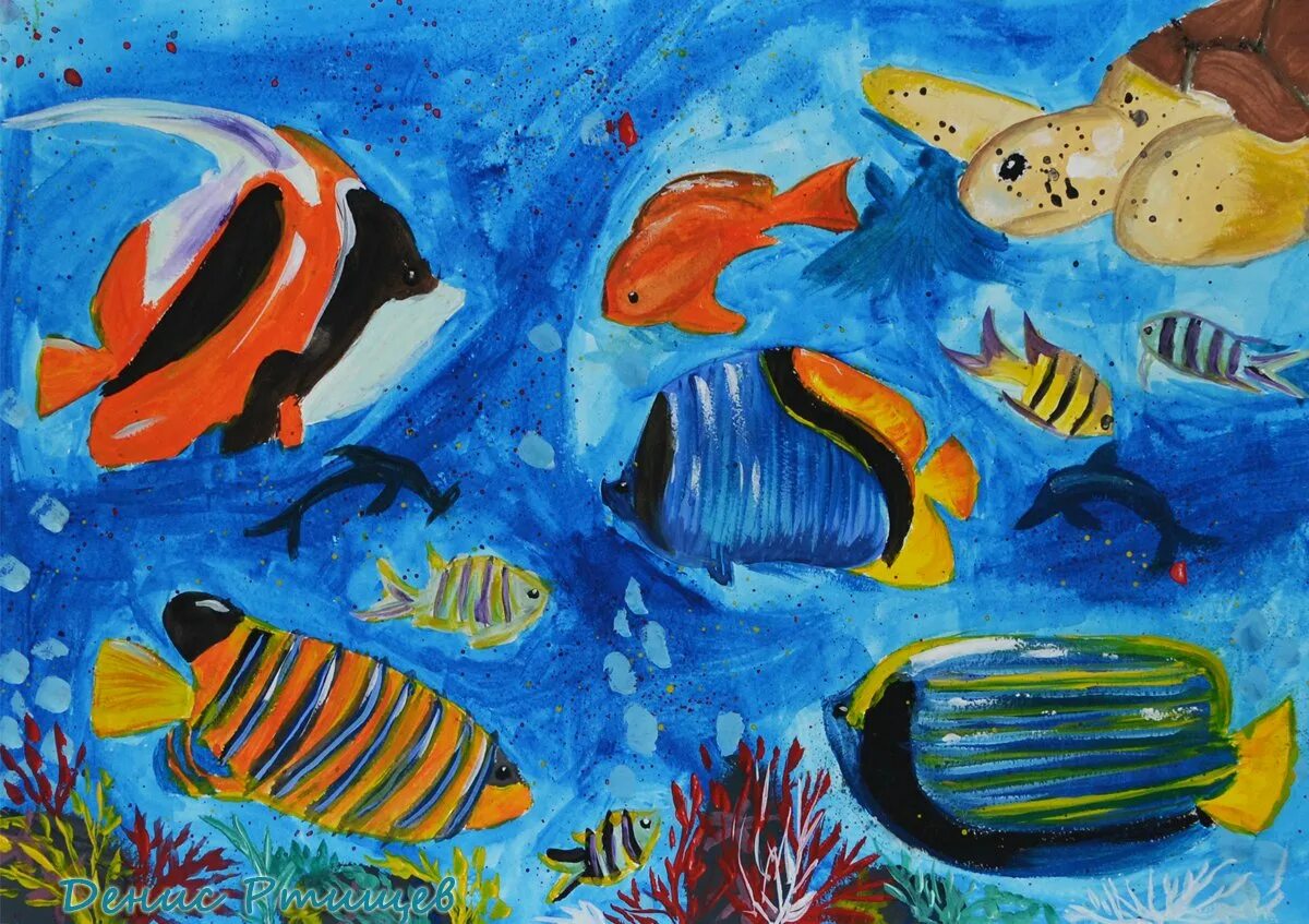 Рисунки красками.