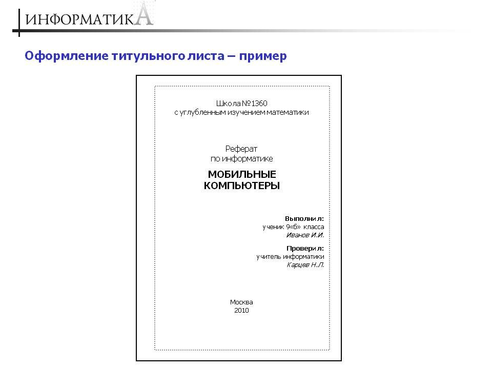 Доклад 1 лист как оформить.