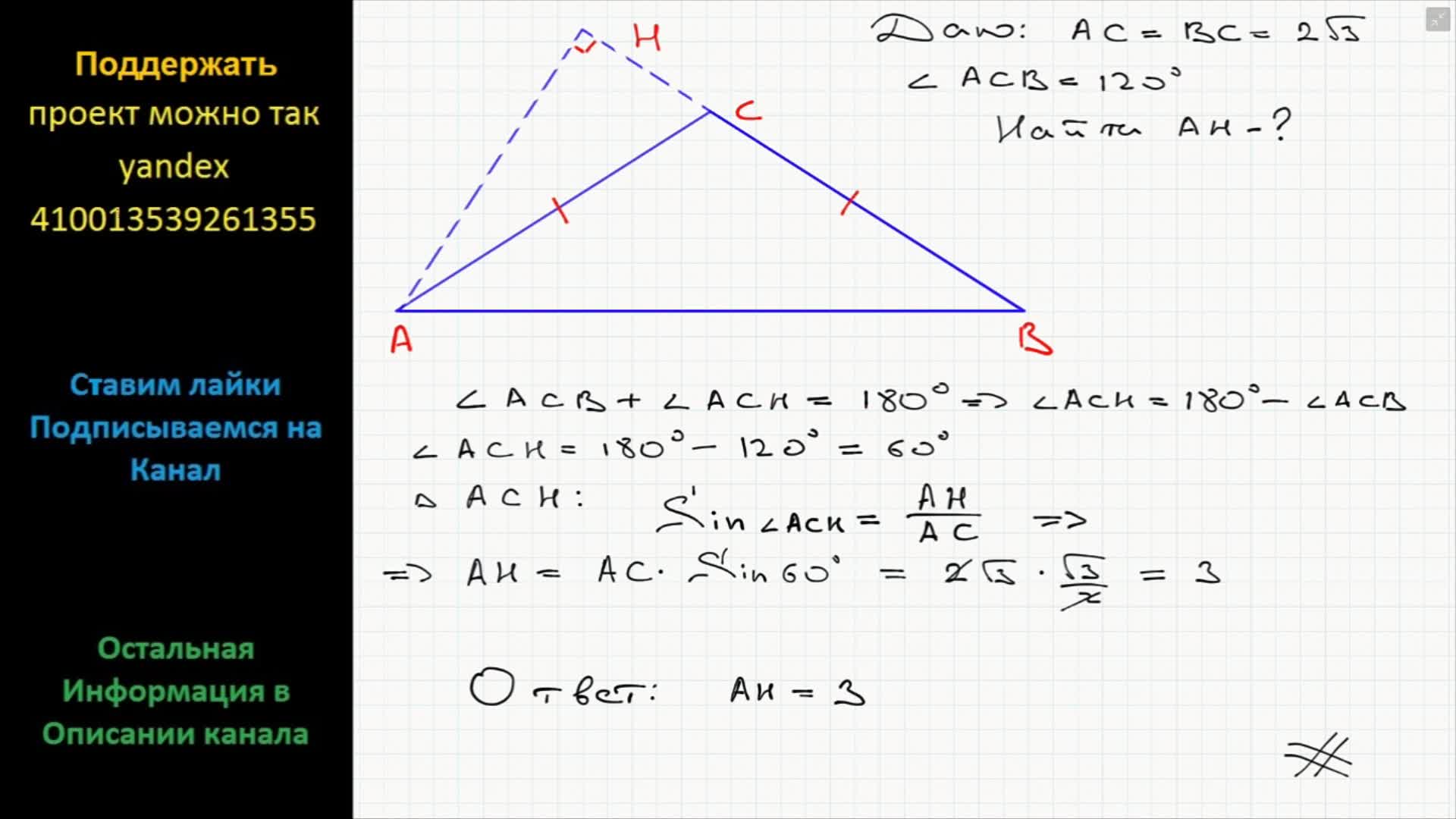 Треугольник АВС С высотой Вн.