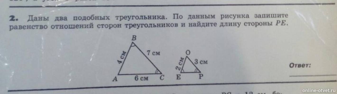 Даны два подобных треугольника по данным рисунка.