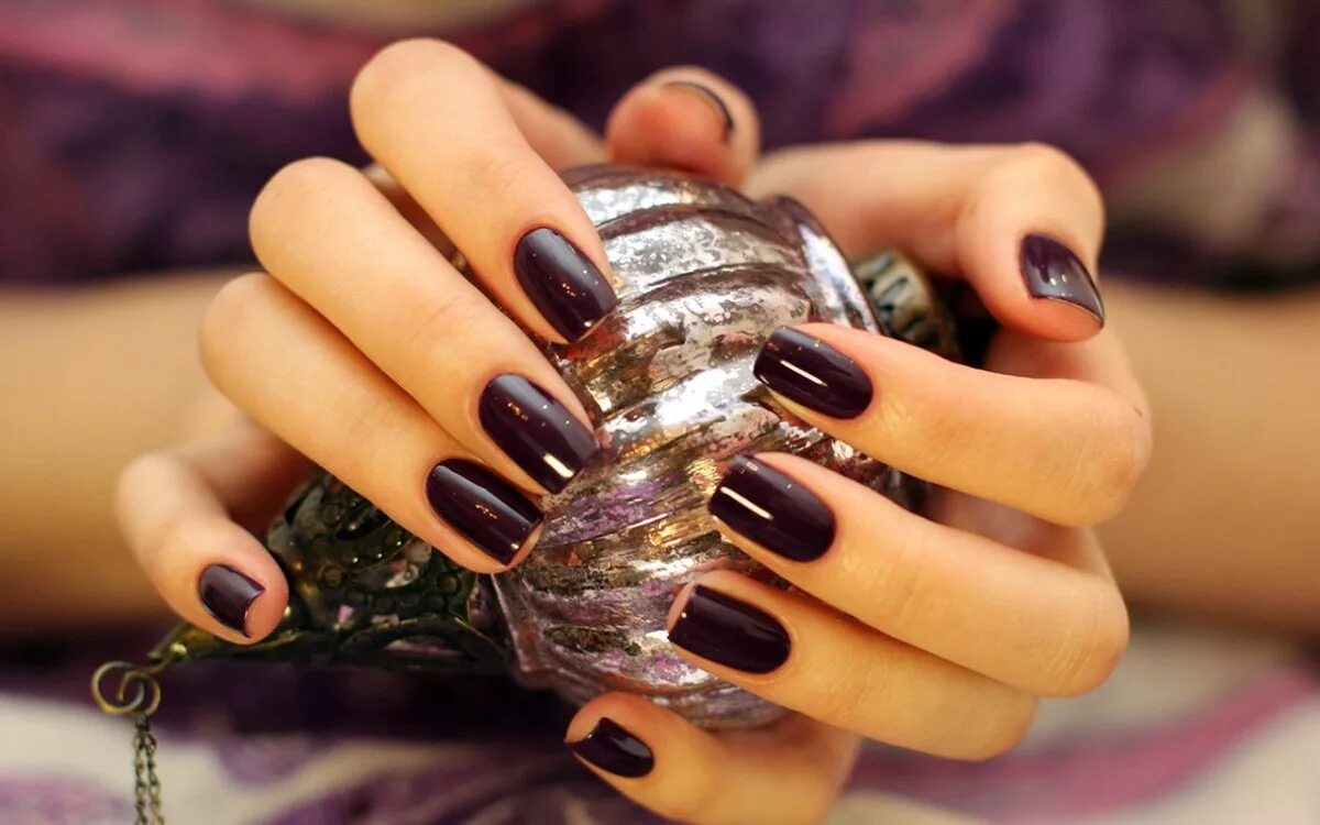 Темно-фиолетовый маникюр.
