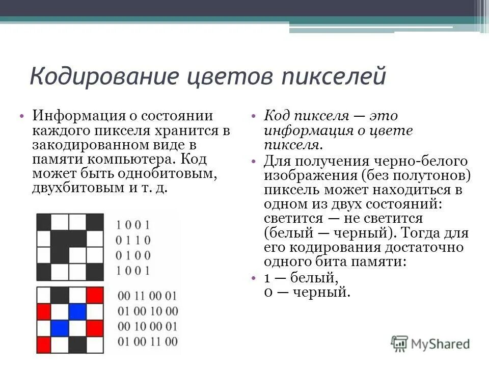Цвет пикселя изображения кодируется.