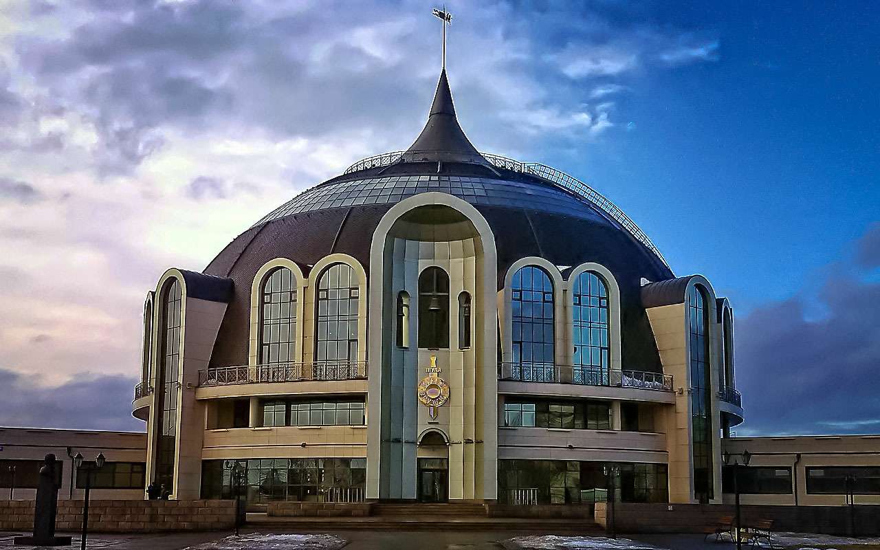 Тульский государственный музей оружия ночью.
