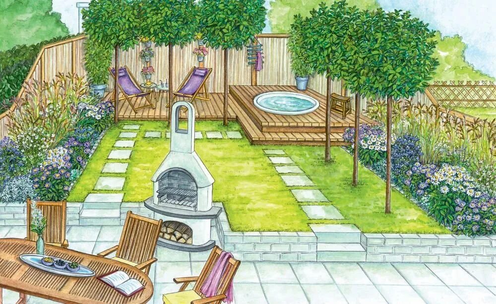 Водоем в саду эскиз.