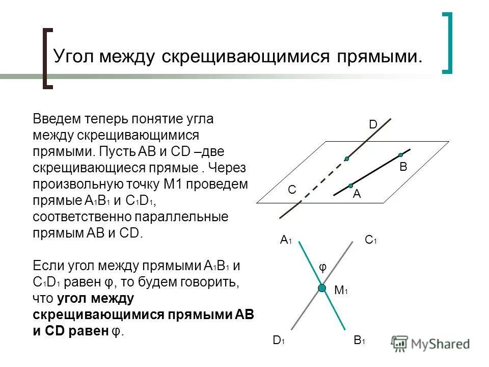 Понятие угла между прямыми.