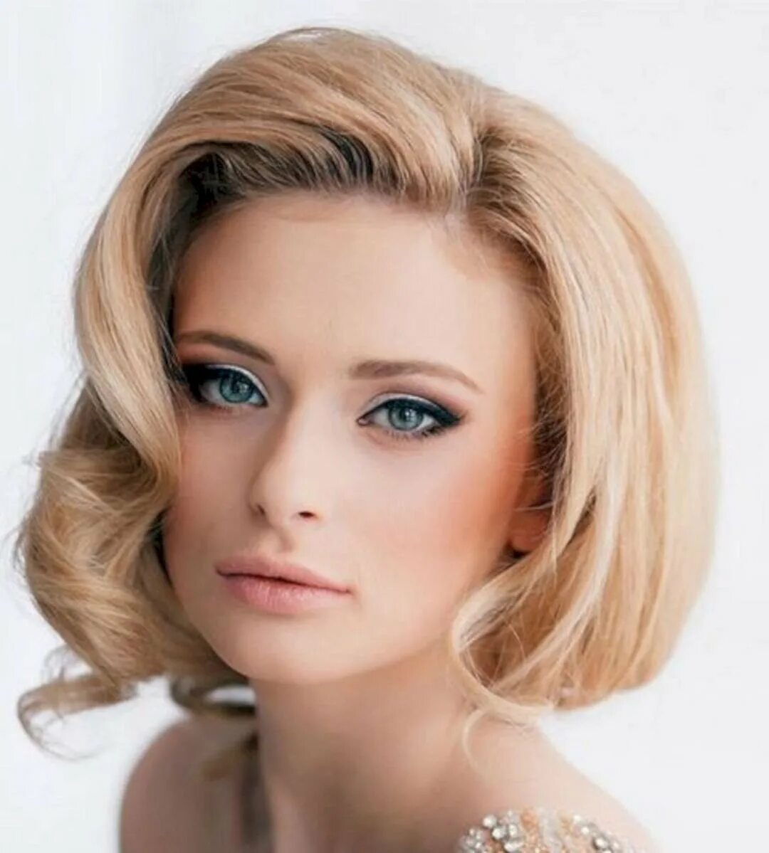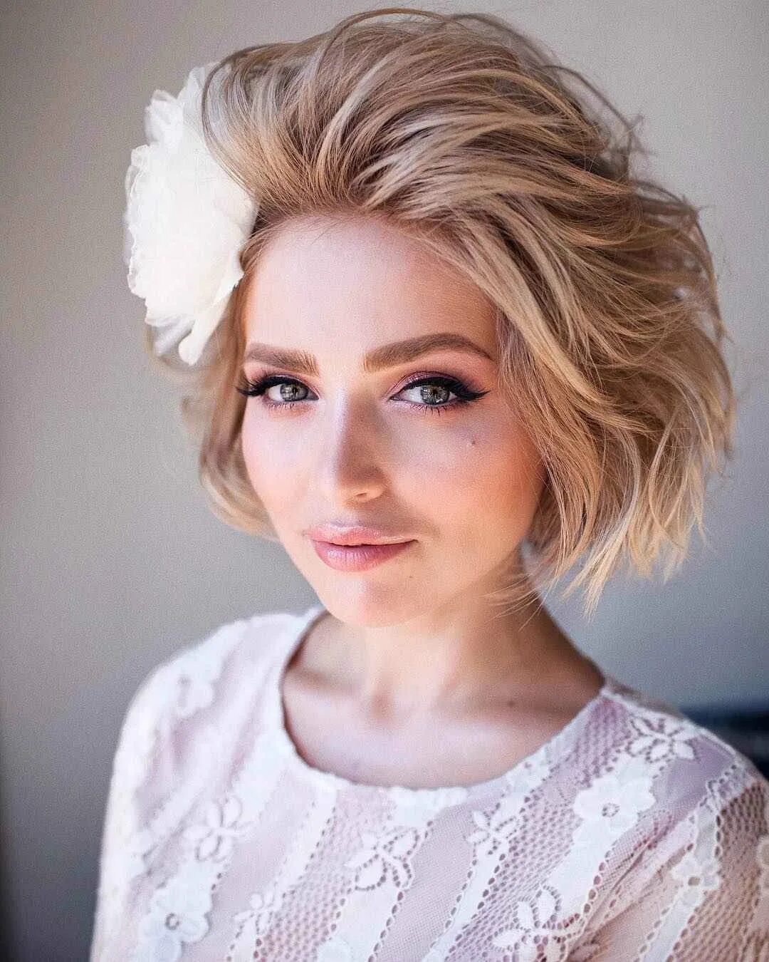 Укладка на короткие волосы каре без челки.