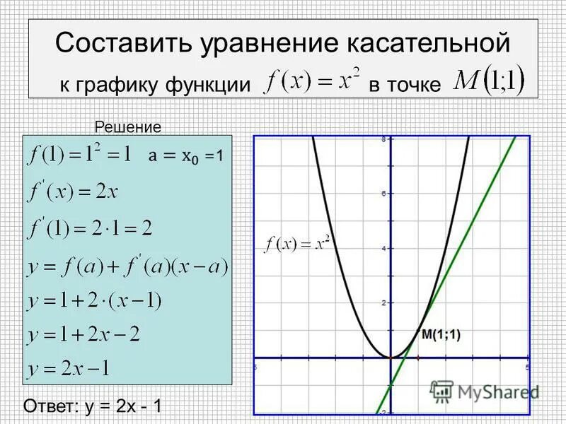 Уравнение касательной к графику функции в точке.