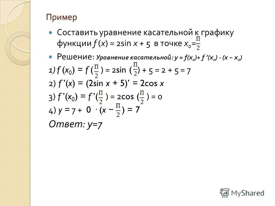 Формула уравнения касательной к графику функции.