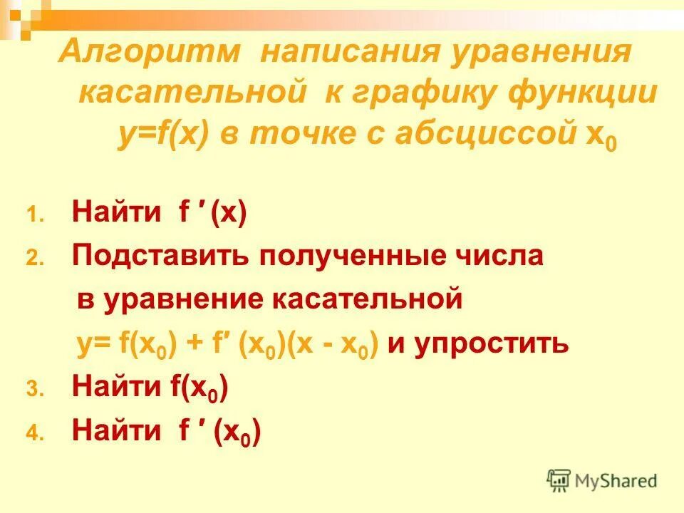 Формула нахождения уравнения касательной к графику функции.