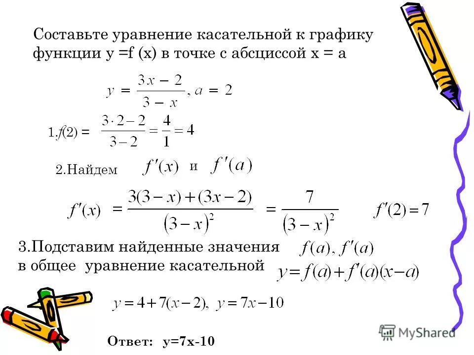 Как составить уравнение касательной проведенной к графику функции.