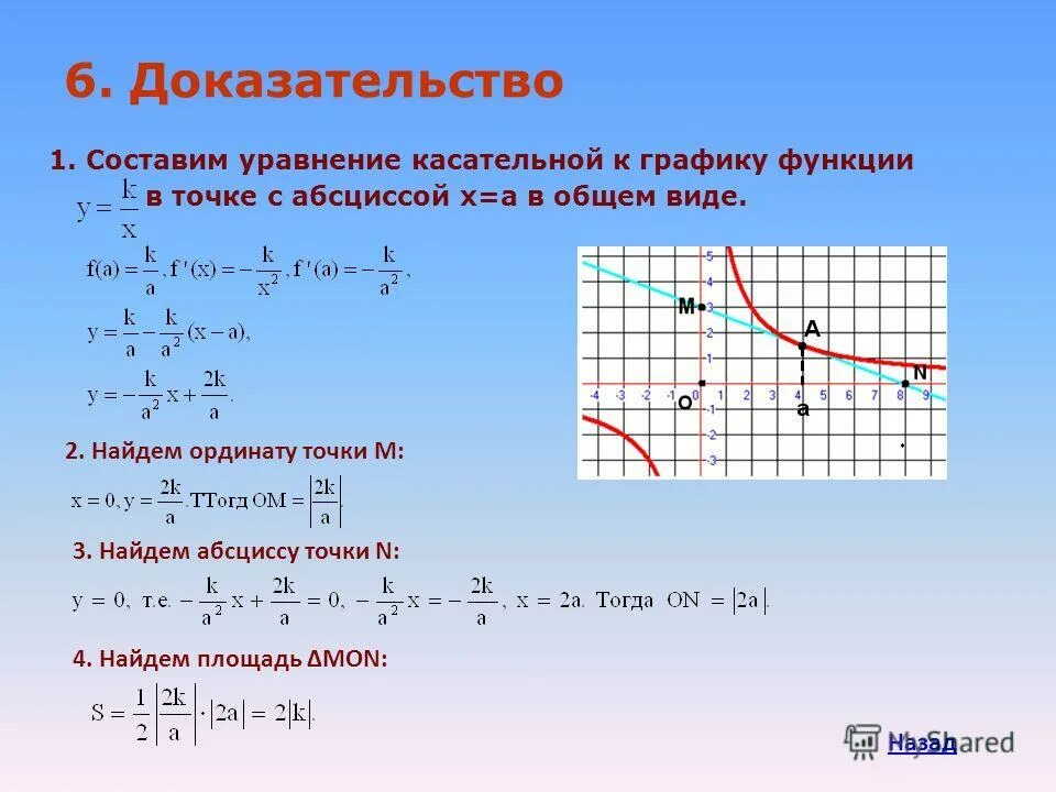 Уравнение касательной к графику.