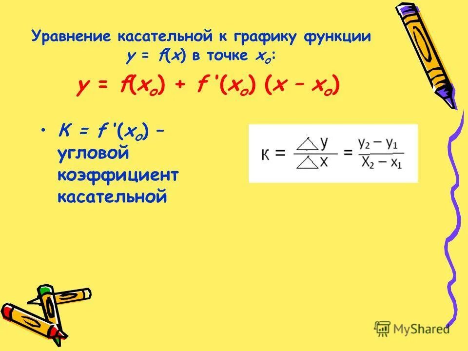 Уравнение касательная к графику функции в точке.