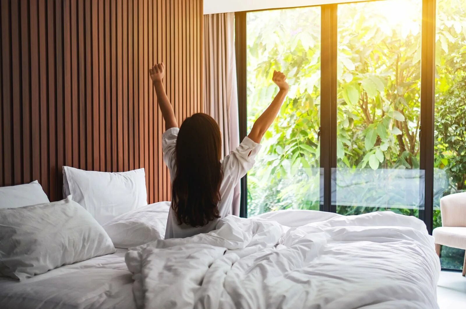 Женщина утром в кровати.