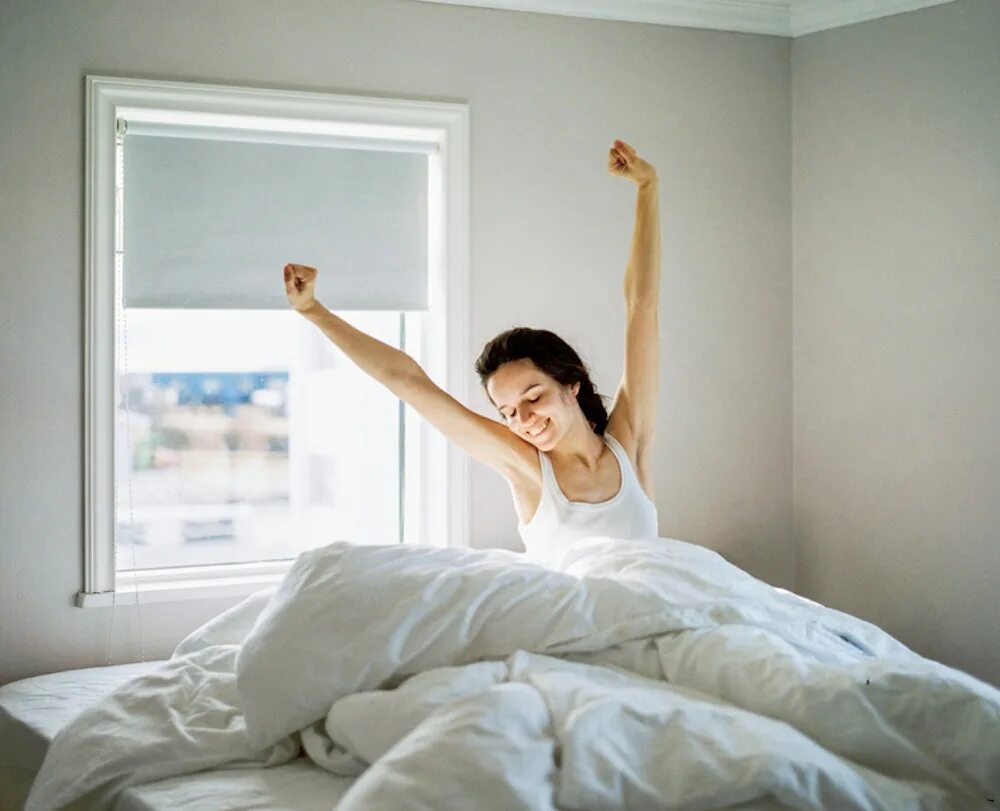 Девушка просыпается утром.