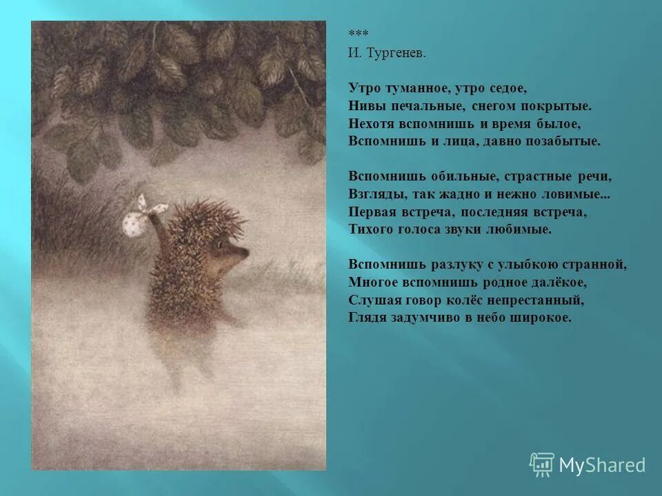 Стих утро туманное утро седое Тургенев.