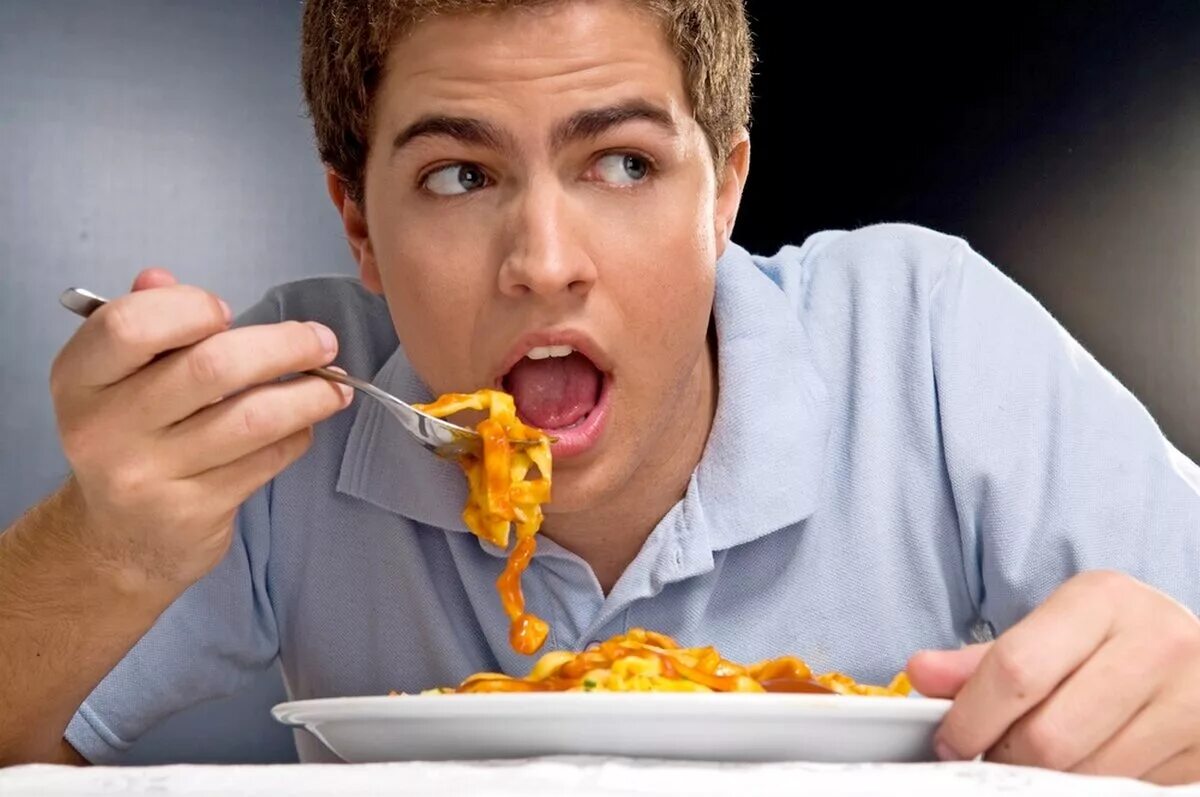 Утром много ем.