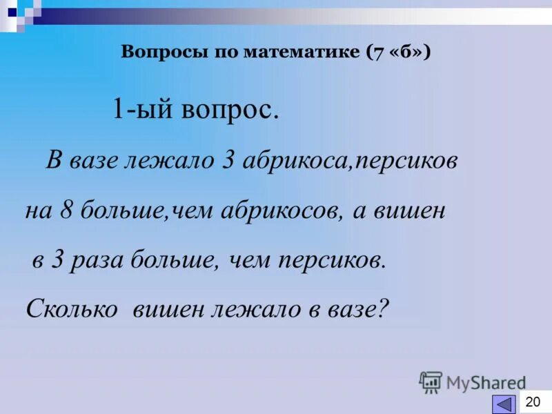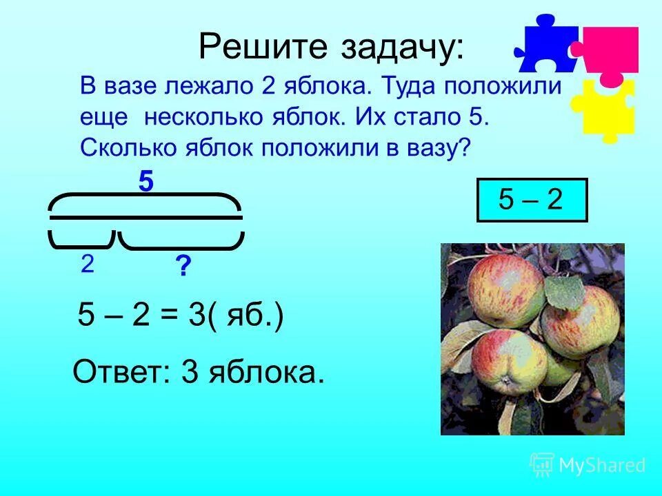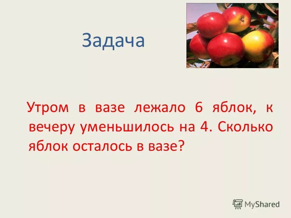 Решение задачи утром в вазе лежало 6 яблок и число к вечеру.