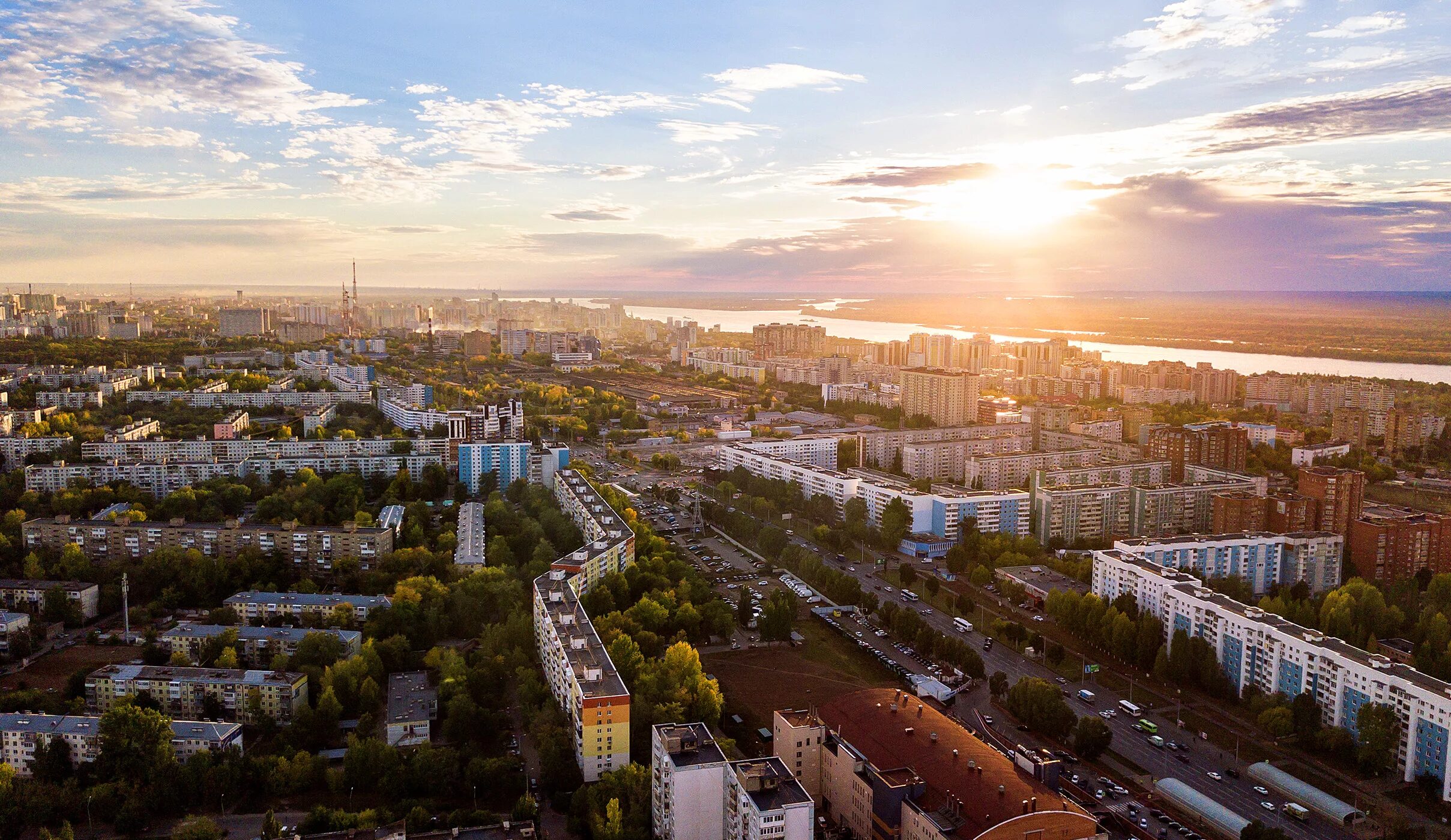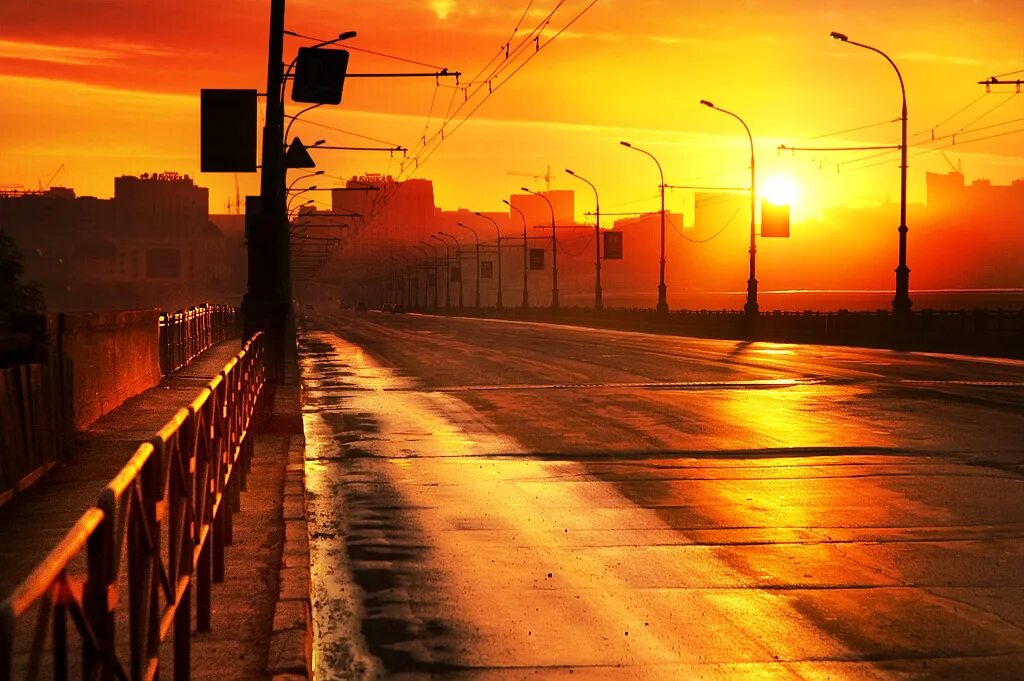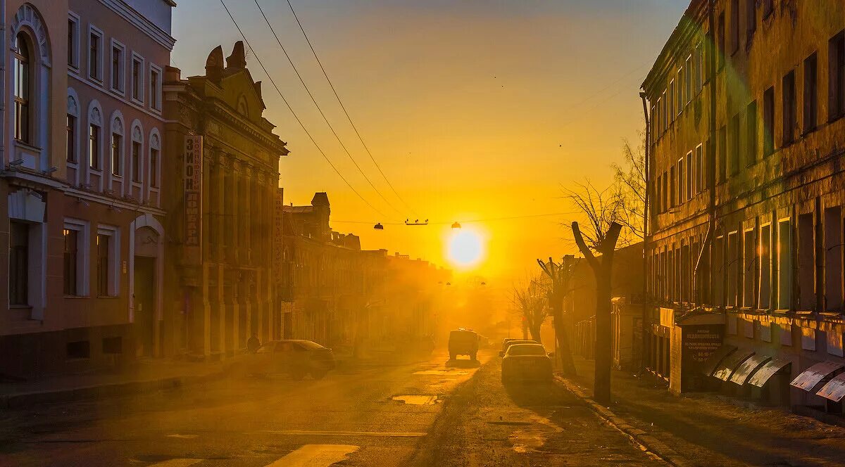 Утро солнце город.
