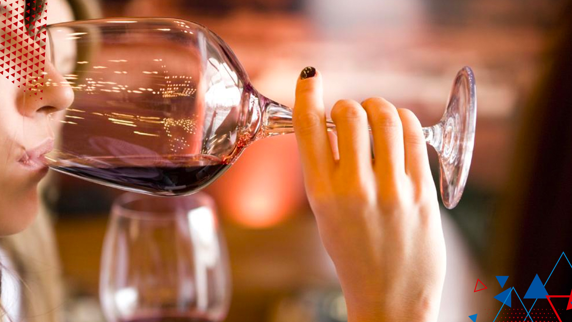Женщина пьет вино.