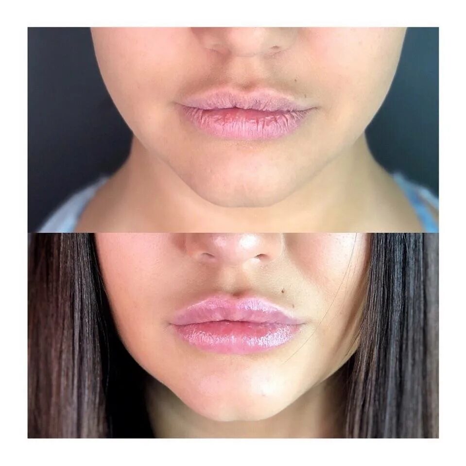 Контурная пластика губ до и после.