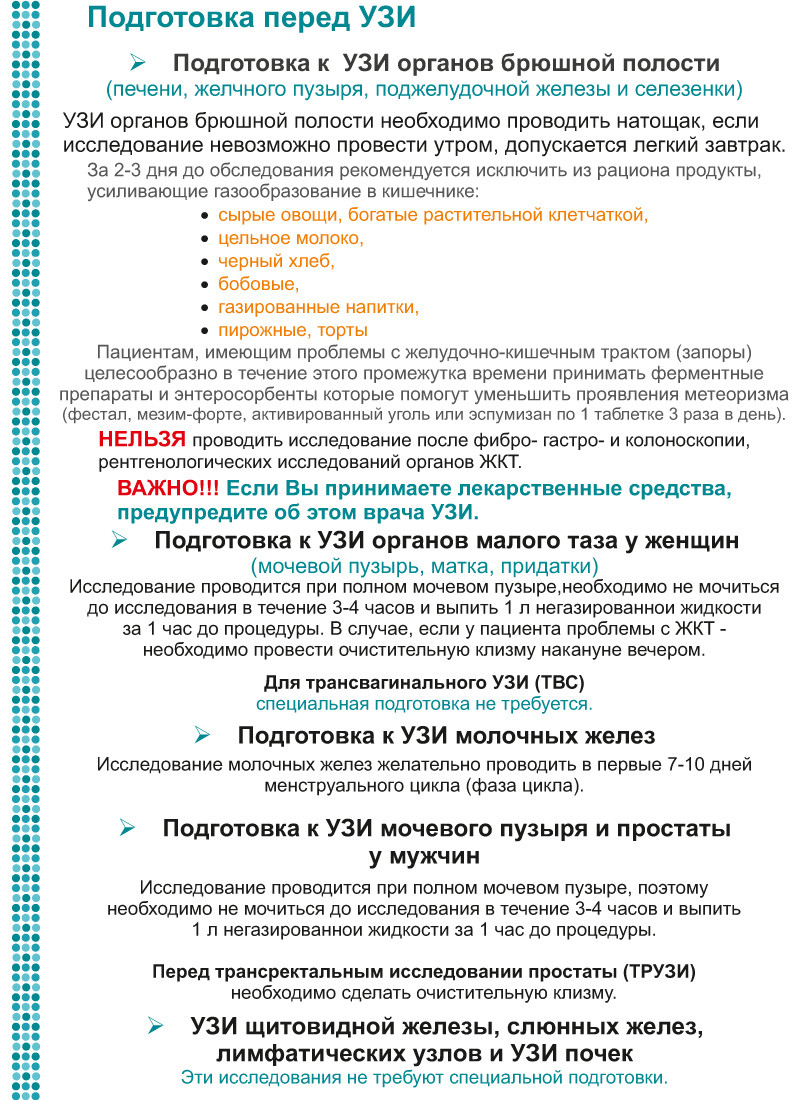 Подготовка к УЗИ брюшной полости памятка.