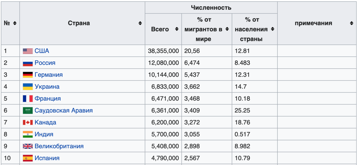 Таблица стран по населению.