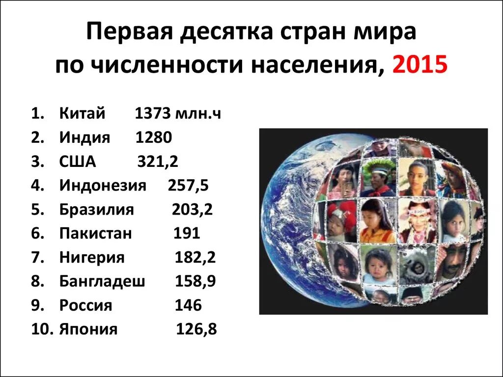 Первые 10 стран по численности населения.
