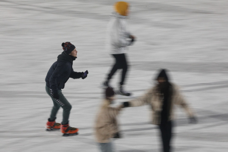 В понедельник утром к открытию катка пришли