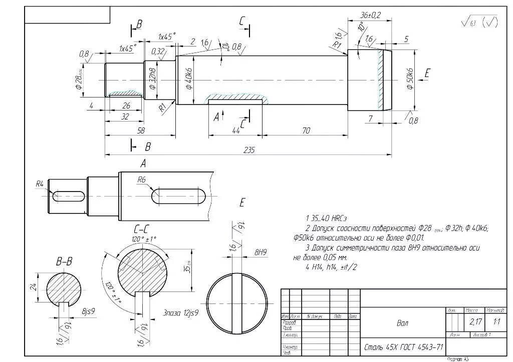 Вал чертеж.
