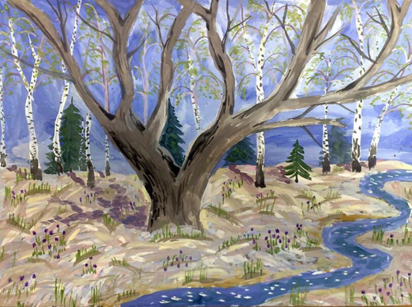Весенний лес рисунок