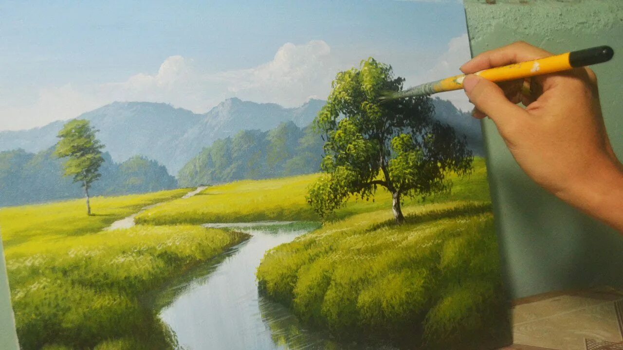 Видеоролик пейзаж акрилом.