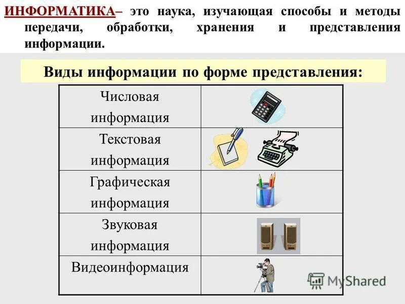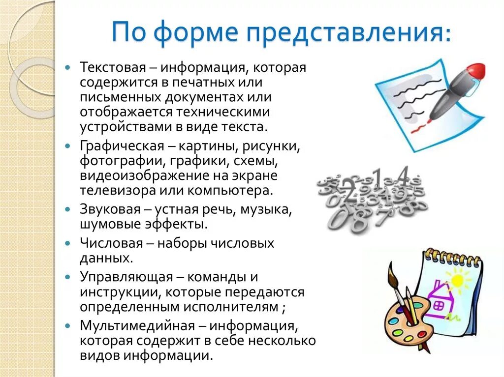 Виды информации по форме представления.