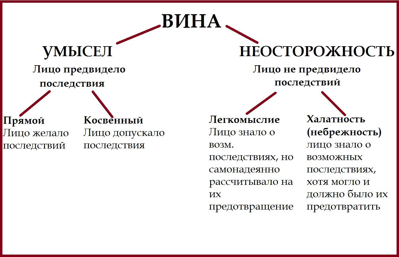 Вина умысел и неосторожность схема.