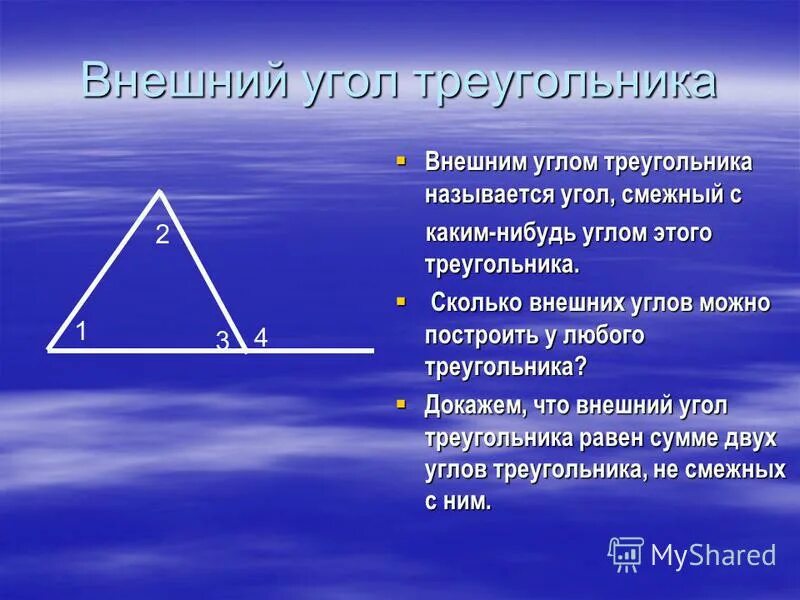 Внешний угол треугольника.