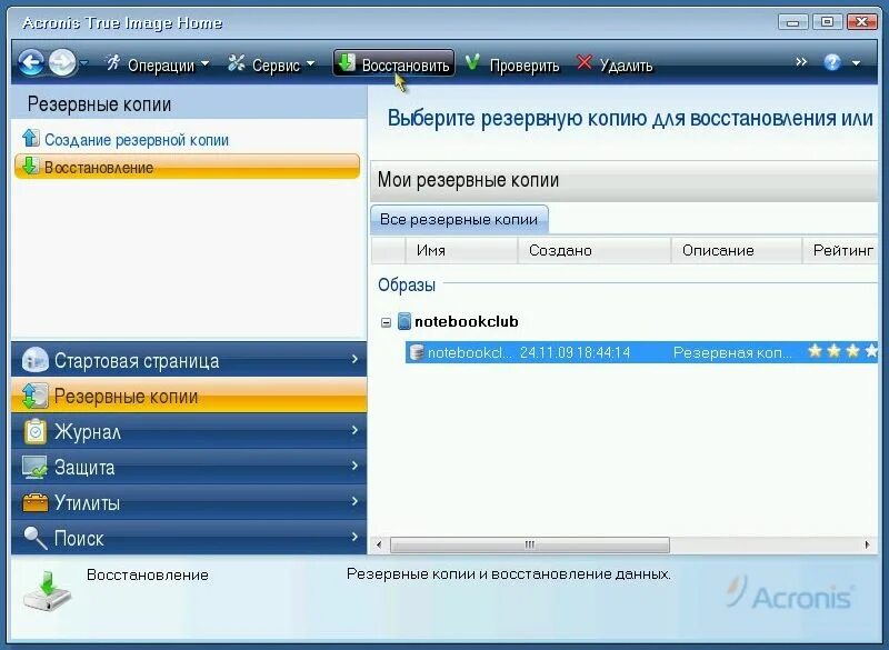 Восстановление компьютера из образа.