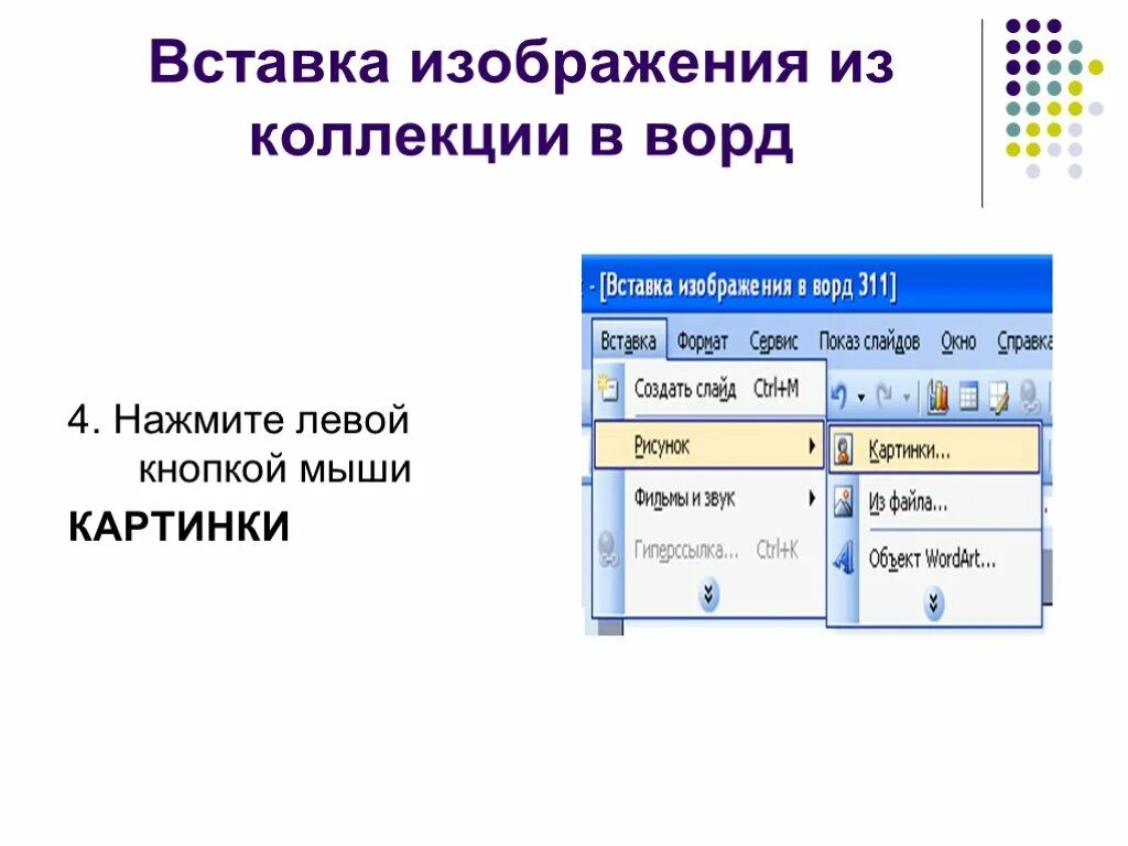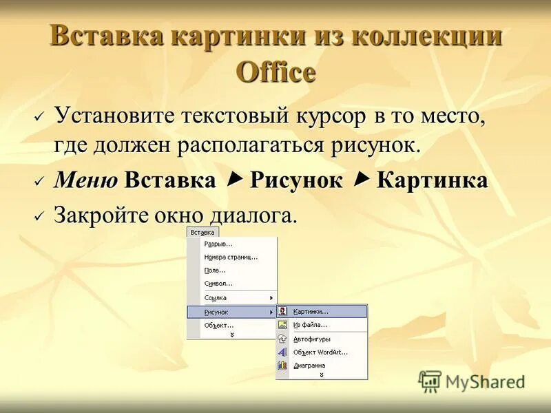 Вставка рисунка на слайд.