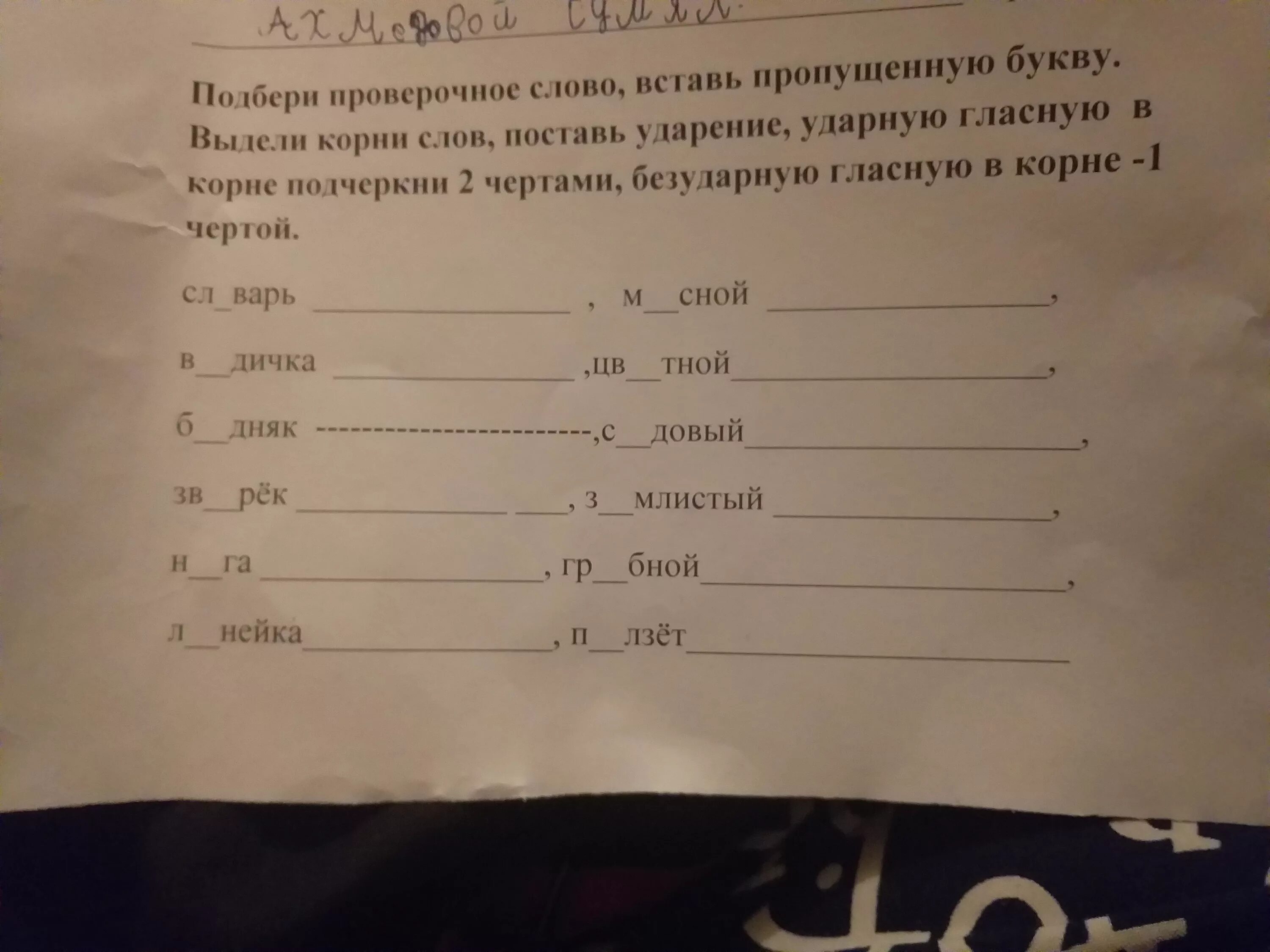 Вставьте безударные гласные подберите проверочные слова