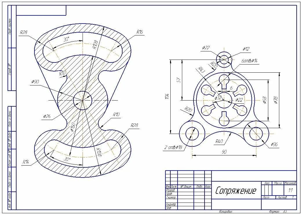Технический чертеж разрезы.