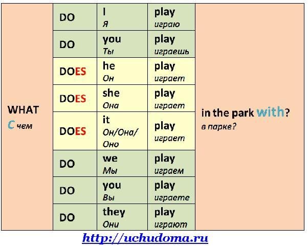 Глагол do does в английском языке таблица.