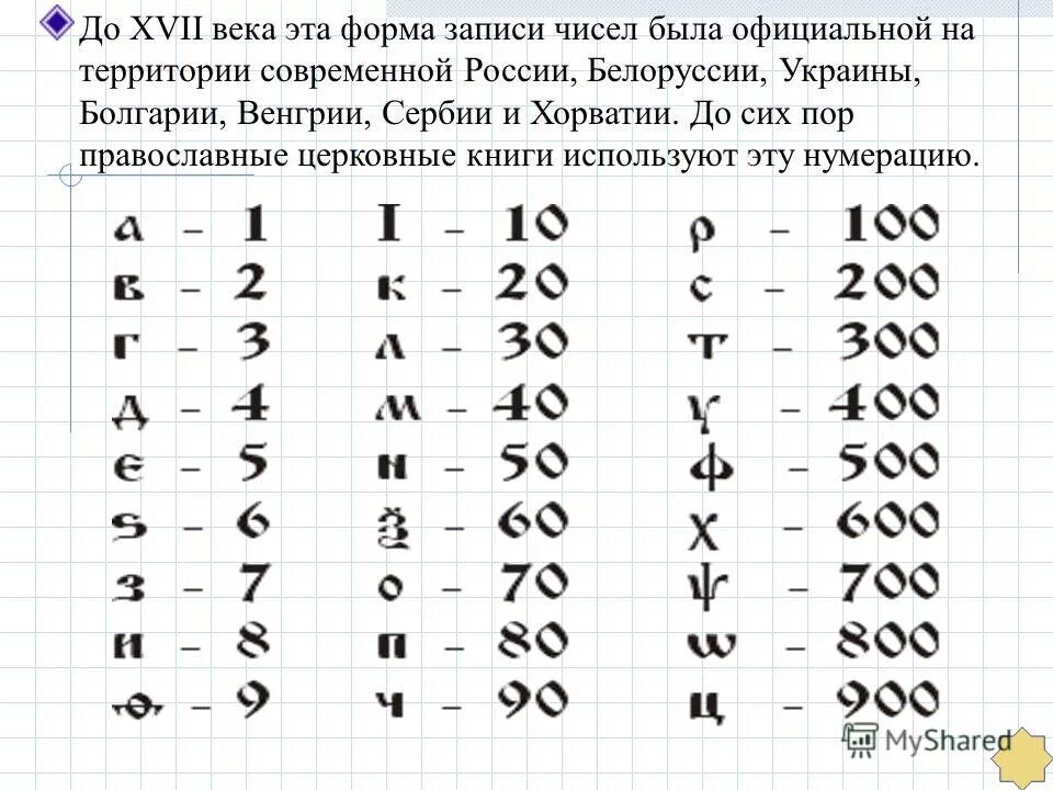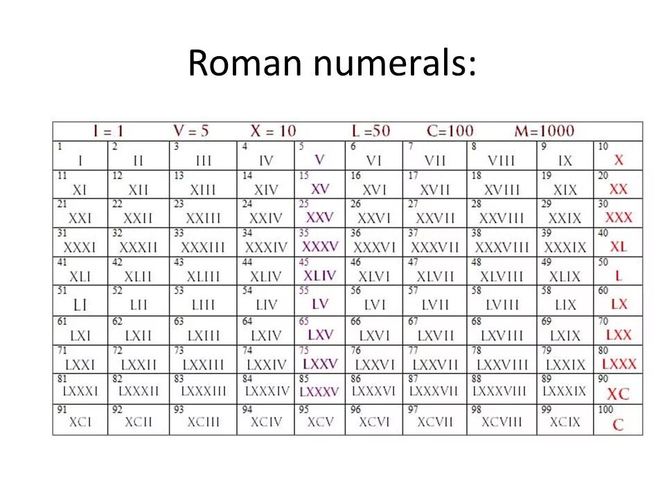 Римские и арабские цифры таблица.