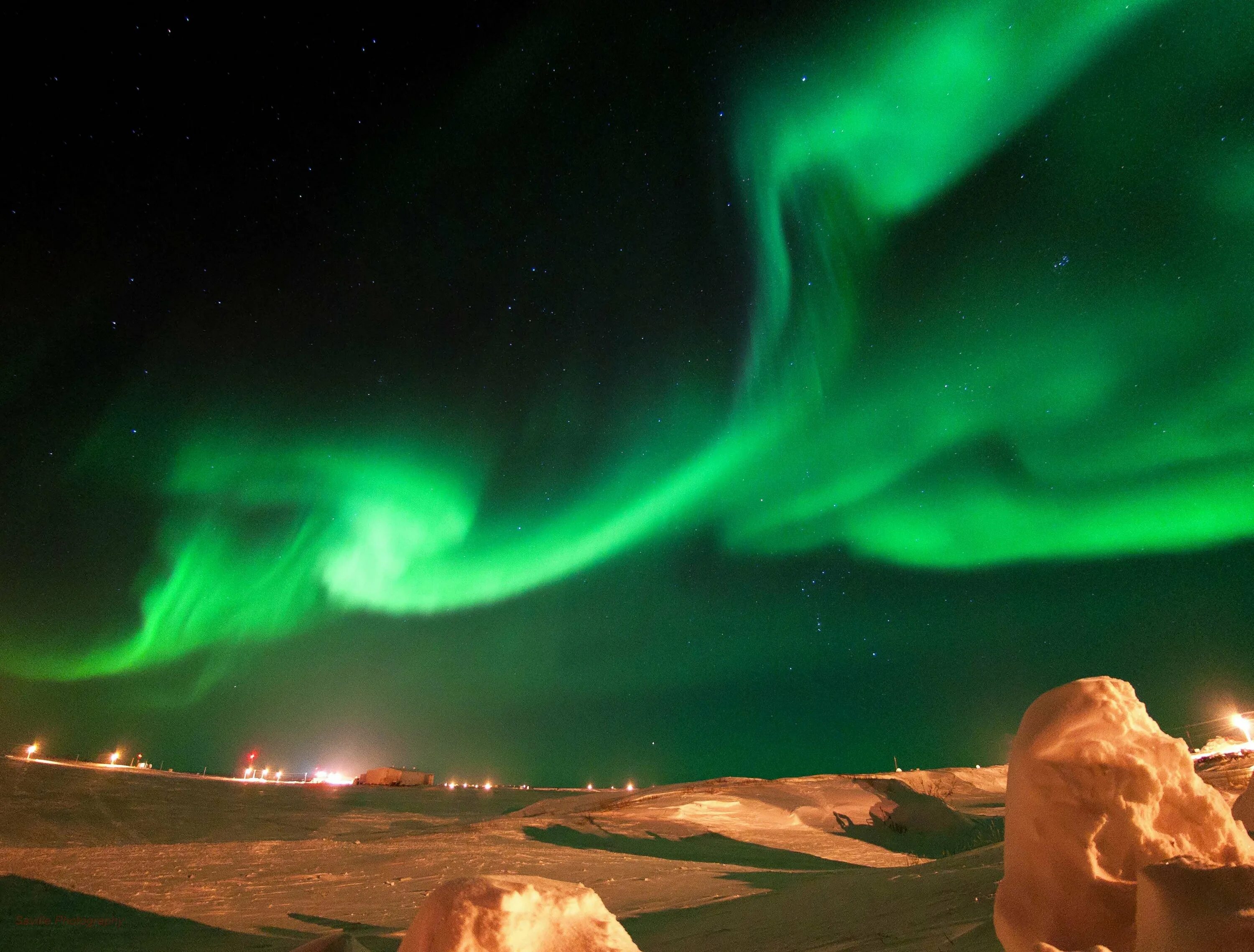 Атмосферное явление полярное сияние.